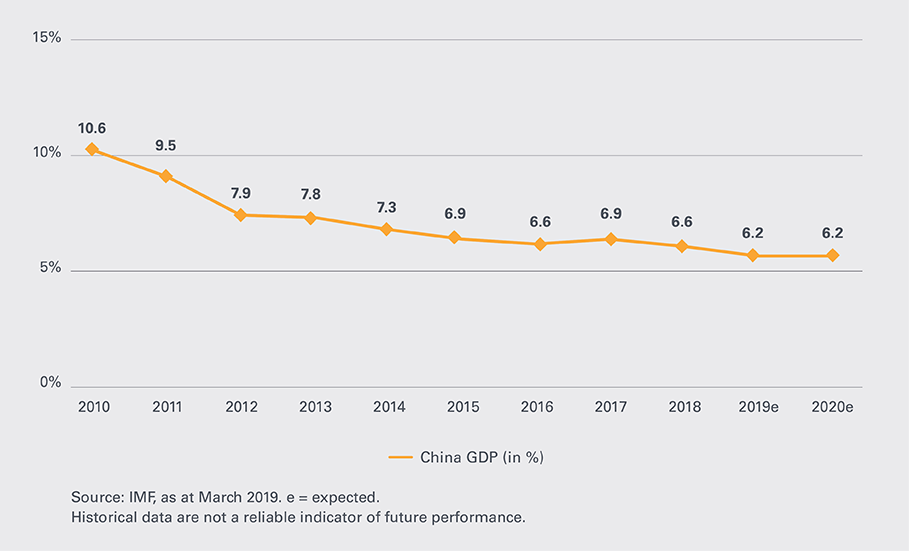 Dragons are powerful symbols in Chinese culture. Of late, though, there has been little to be seen of this thousand-year-old legend – at least when it comes to the economy. That’s because cracks have recently developed in the notion of China as an eternal engine of economic growth. In 2018 gross domestic product (GDP) expanded by only around 6.6 per cent, the lowest rate in some three decades. The previous year it had been 6.9 per cent. This is all the more dramatic given that the wellbeing of the Middle Kingdom is of huge importance for the global economy, if only due to its sheer size and weight in global trade. The prospects for 2019 are also cloudy: at its most recent annual conference, the Chinese People's Congress confirmed the growth target of 6.0 to 6.5 per cent that had been rumoured in the media. The question now is this: will China’s economy reach its low point this year?